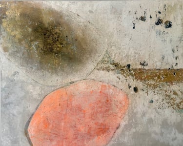 Acrylic and gold leaf on stretched canvas, with a shadow gap frame